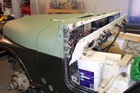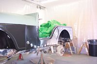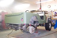 Trial fitting the new quarter panel and new fenders with the hood and grille.